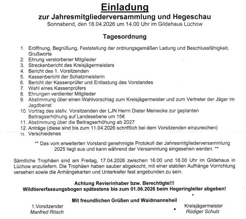 Alternativ dazu können die Angaben auch weiterhin in der gewohnten Form mittels Papierbogen gemacht und bei ihrem Hegeringleiter abgegeben werden. Die Bögen erhalten Sie von ihrem Hegeringleiter auf Anfrage. Diese Bögen müssen spätestens bis zum 01.06.2026 beim Hegeringleiter abgegeben werden!